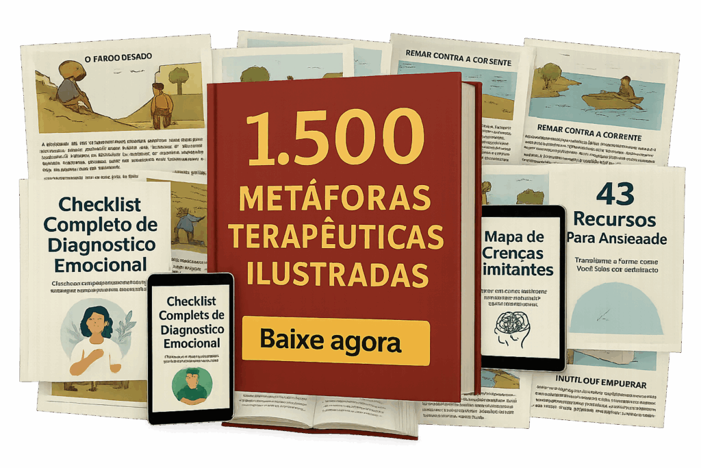 Revolucione sua abordagem terapêutica com metáforas poderosas que simplificam conceitos complexos e despertam aprendizados profundos em seus atendimentos. Este material exclusivo será sua ferramenta diária para sessões mais impactantes.